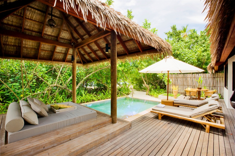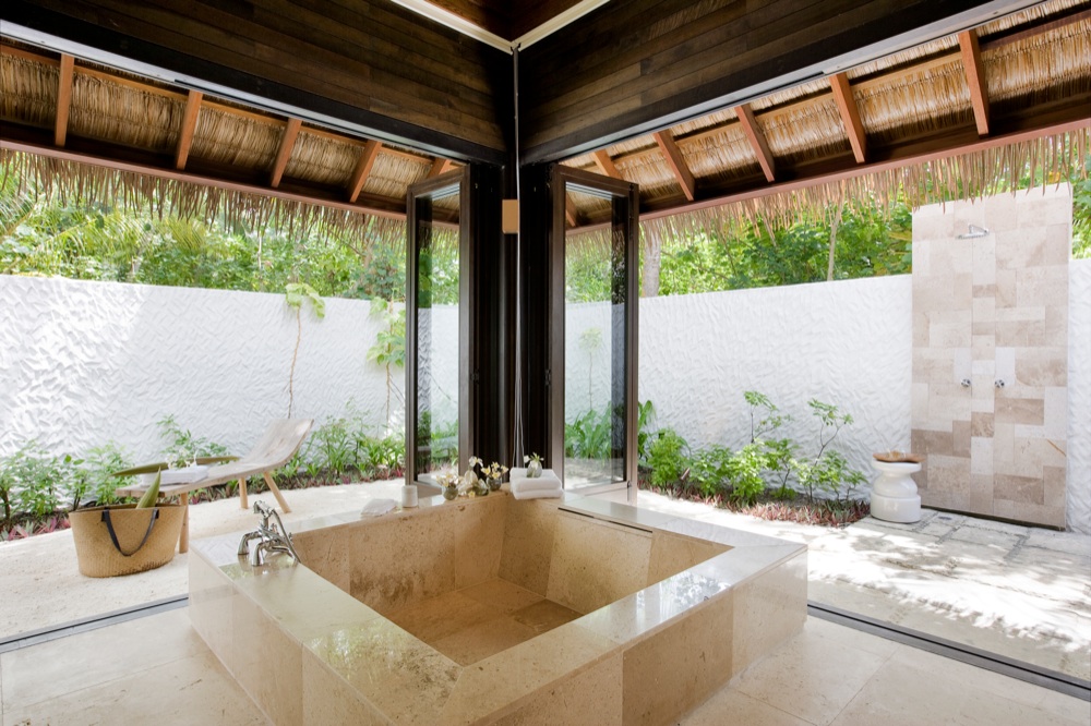 Il rispetto della cultura e dei materiali locali è evidente anche nella scelta degli arredi, studiati dal noto architetto giapponese Koichiro Ikebuchi. Tutte le sistemazioni overwater (ville e suite) dispongono di una passerella di legno che si staglia sulla laguna e di un terrazzo privato per “scivolare” direttamente in acqua. Mentre le suite e le ville a terra sono immerse nella vegetazione tropicale o hanno accesso diretto alla spiaggia.