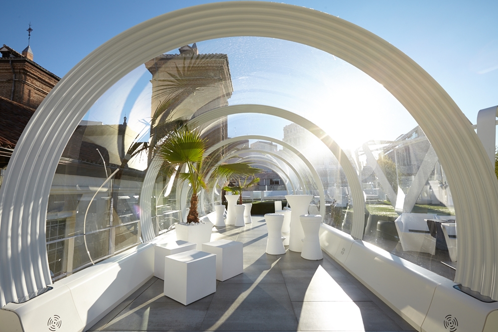 L’architettura del Tartan Roof del Círculo de Bellas Artes è stata concepita nel rispetto dell’architettura dell’edificio e per non intralciare la vista a 360° della città