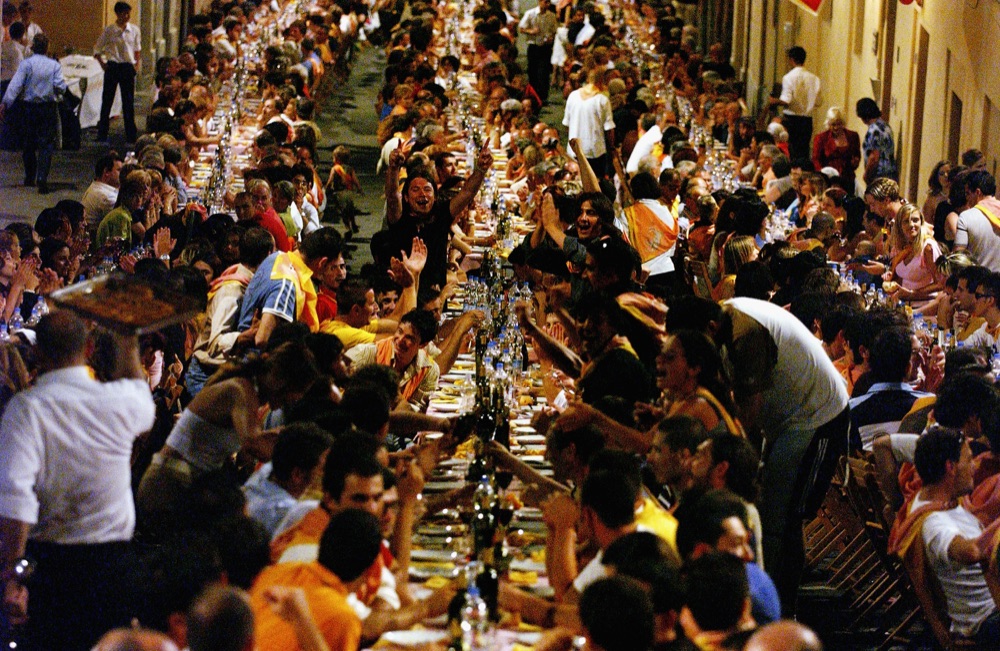 Come una in una sorta di rituale, per entrare fin da subito nello spirito del Palio, nelle settimane che lo precedono ogni contrada organizza cene all’aperto lungo le proprie strade. Qui è possibile mangiare cucina tradizionale a buon mercato prenotando anche il giorno stesso all’interno della sede della contrada. Mentre, la cena del vincitore di regola si svolge in autunno, ma non è riservata al pubblico.