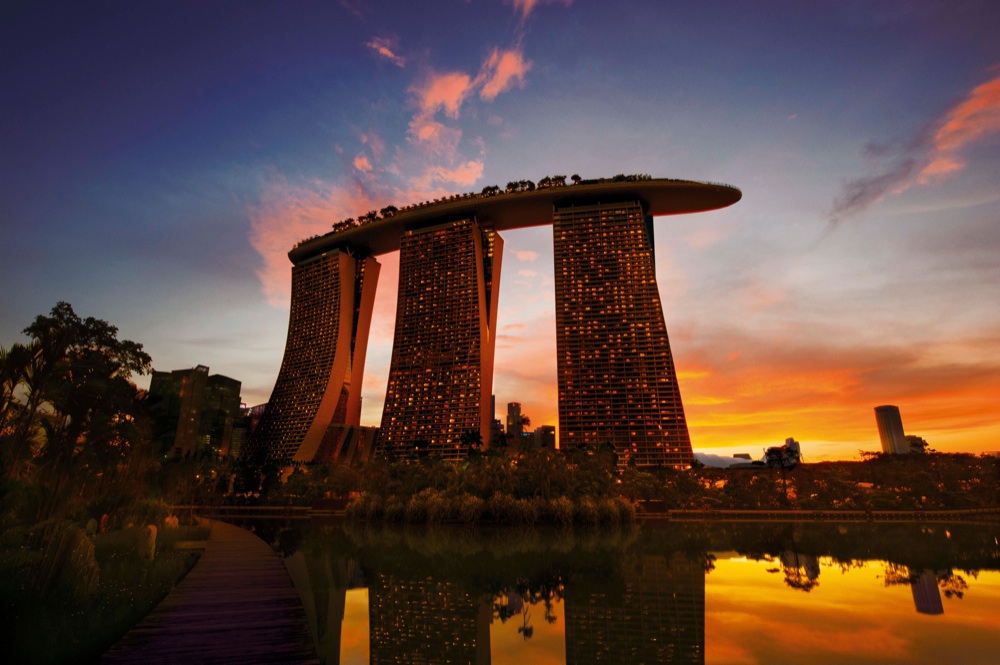 Visitare il Marina Bay Sands. Dalla sua inaugurazione nel 2011, il mega hotel/resort è diventato il simbolo universalmente riconosciuto di Singapore. In pieno centro città, i suoi tre grattacieli sormontati dallo SkyPark, l’enorme struttura a forma di barca, catalizzano l’attenzione dei turisti per una serie di motivi: oltre al grande albergo distribuito nelle tre torri che ospitano 2.500 suites, all’interno del Marina Bay Sands si si trova il terzo casino più grande del mondo, con 500 tavoli da gioco e 1.600 slot machines, un centro commerciale di 74.000mq, due teatri, sette ristoranti. E la piscina a sfioro più alta del mondo.