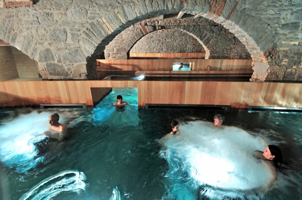 Dismessi i macchinari per la produzione della birra Hürlimann, gli spazi sono stati occupati da saune e vasche dove dimenticare lo scorrere del tempo