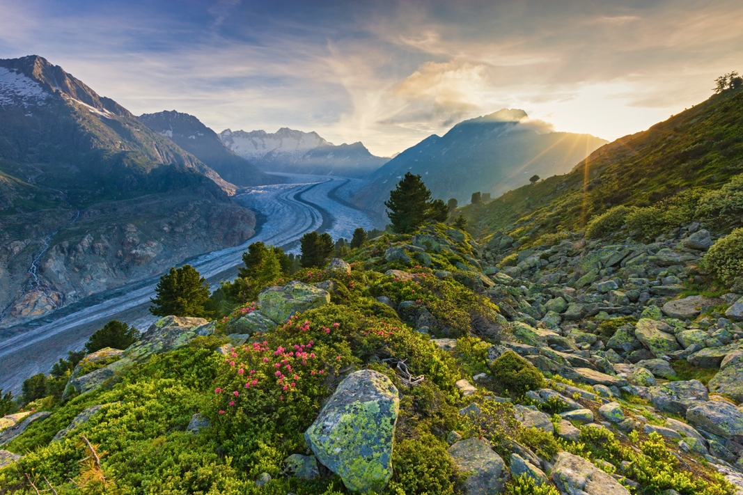 Una lunga distesa di ghiaccio di ben 23 chilometri collega il Vallese alla Regione della Jungfrau. Il ghiacciaio dell’Aletsch, patrimonio dell’Unesco, è infatti il più lungo delle Alpi. Punteggiato di villaggi chiusi al traffico è un vero paradiso di tranquillità.