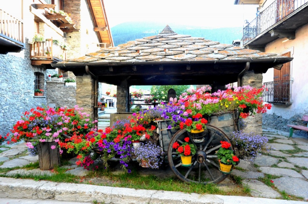 Etroubles (AO) è situato nella vallata del Gran San Bernardo, a 1.270 di altitudine. Il centro storico di questo piccolo borgo medievale, con abitazioni in pietra locale, è un museo a cielo aperto grazie alle numerose sculture e affreschi permanenti di artisti contemporanei