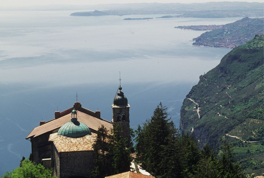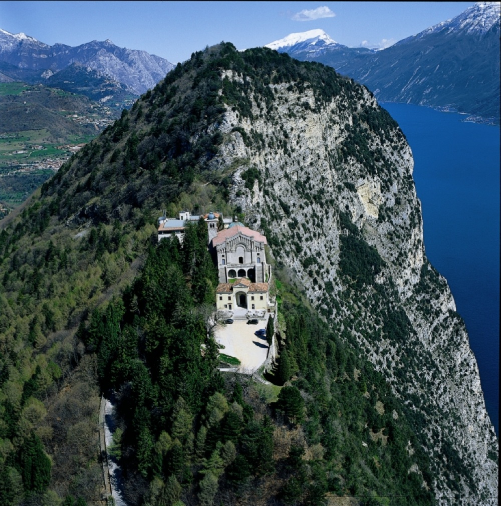 Tignale (BS) è un comune sparso situato sul Lago di Garda. Nella foto, il Santuario della Madonna di Monte Castello, che sorge sulla cima del Monte Cas.