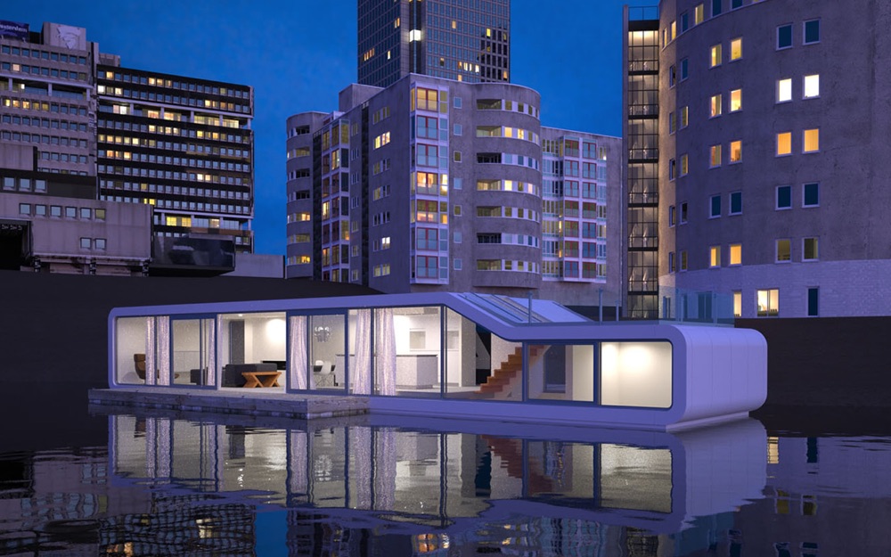 Ormeggiata sul fiume Amstel, ad Amsterdam, la Water villa de Omval è una residenza progettata su due livelli dallo studio Plus31Architects. La cucina e il soggiorno si affacciano sull’acqua, le camere e i bagni si trovano al di sotto della linea di galleggiamento.