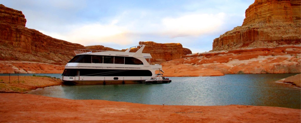 La Bravada ne è il tipico esempio. Come una grande casa galleggiante, realizzata nel deserto a Phoenix e ancorata a Lake Powell, è disponibile per viaggi di lusso ed eventi mondani. Lo stile futuristico dello scafo, gli interni eleganti delle cinque sale di rappresentanza, l’enorme cabina principale e il piccolo eliporto sul tetto la rendono una delle houseboat più esclusive.