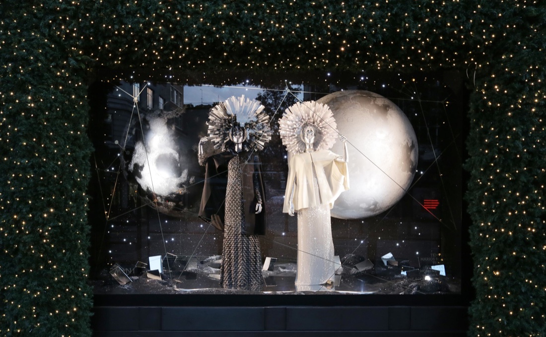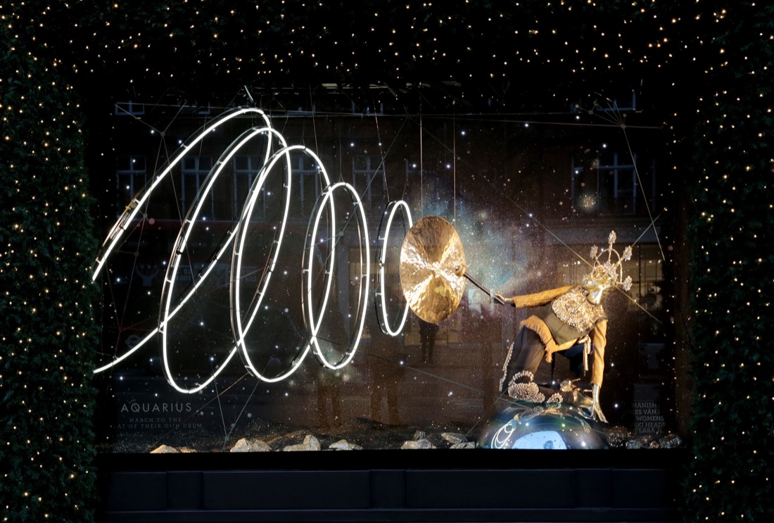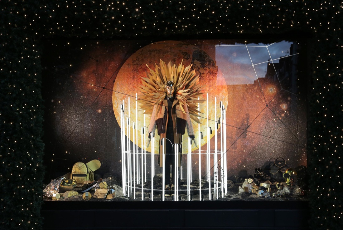 Lo storico department store fondato nel 1906 dall’uomo d’affari di Chicago, Harry Gordon Selfridge, ha riprodotto in ciascuna delle sue 12 vetrine i segni zodiacali e nelle tre enormi vetrine ad angolo tra Oxford street e Orchard Street quello che si pensa sia la piu’ grande rotazione del sistema solare ricreato in un allestimento.