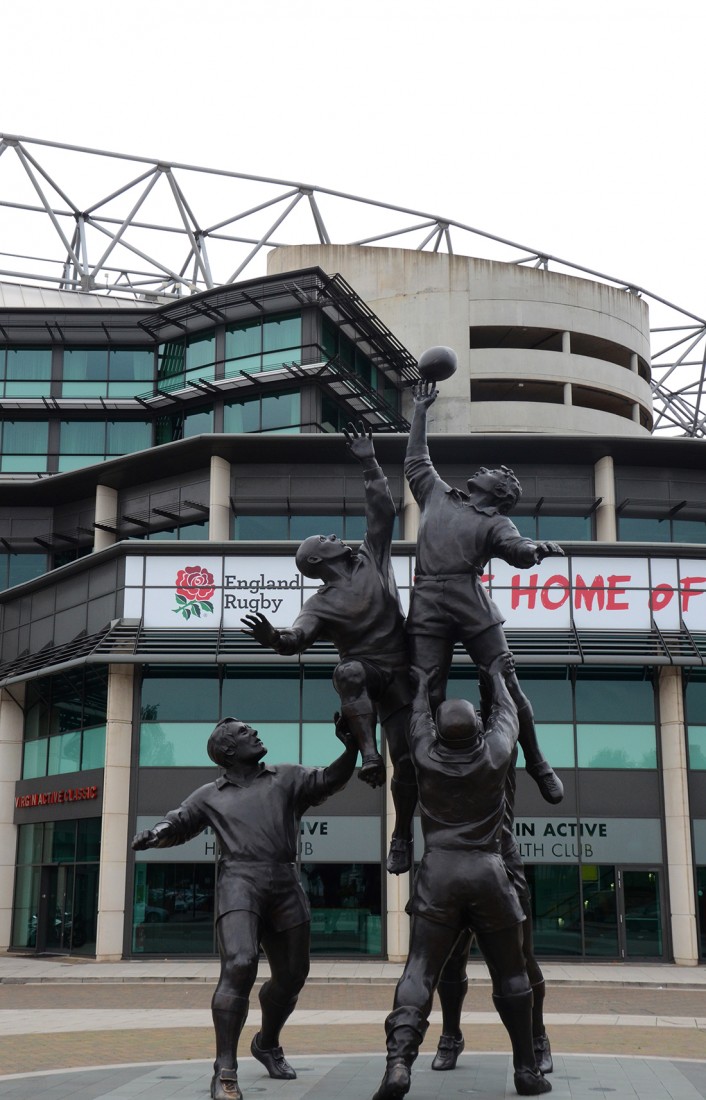 All’esterno dello Stadio di Twickenham, questa statua in bronzo alta trenta metri raffigura i giocatori in azione mentre cercano di afferrare la palla ovale. Questo è il meeting point più famoso al mondo per gli appassionati