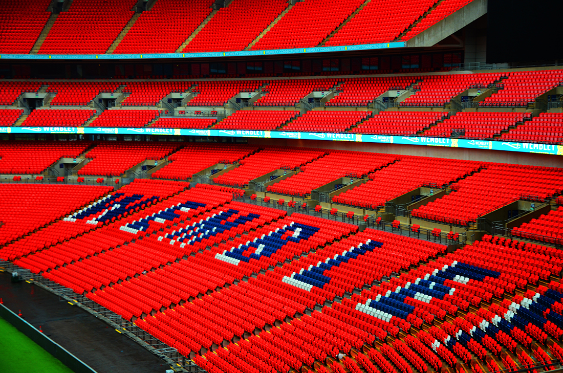 Lo Stadio di Wembley è un altro luogo magico: anche se è stato rifatto nel 2007, l’arco che lo cinge come una corona, le sedie rosse sono capaci di raccontare storie antiche di passioni.