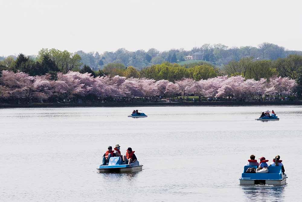 Uno dei posti più belli per ammirarlo è il percorso a piedi, ideale per il jogging, che circonda il lago Tidal Basin ma anche attorno a tutti i grandi monumenti si scoprono scorci indimenticabili, come il Jefferson Memorial, il Washington Monument, il Lincoln Memorial fino alla Washington Marina.