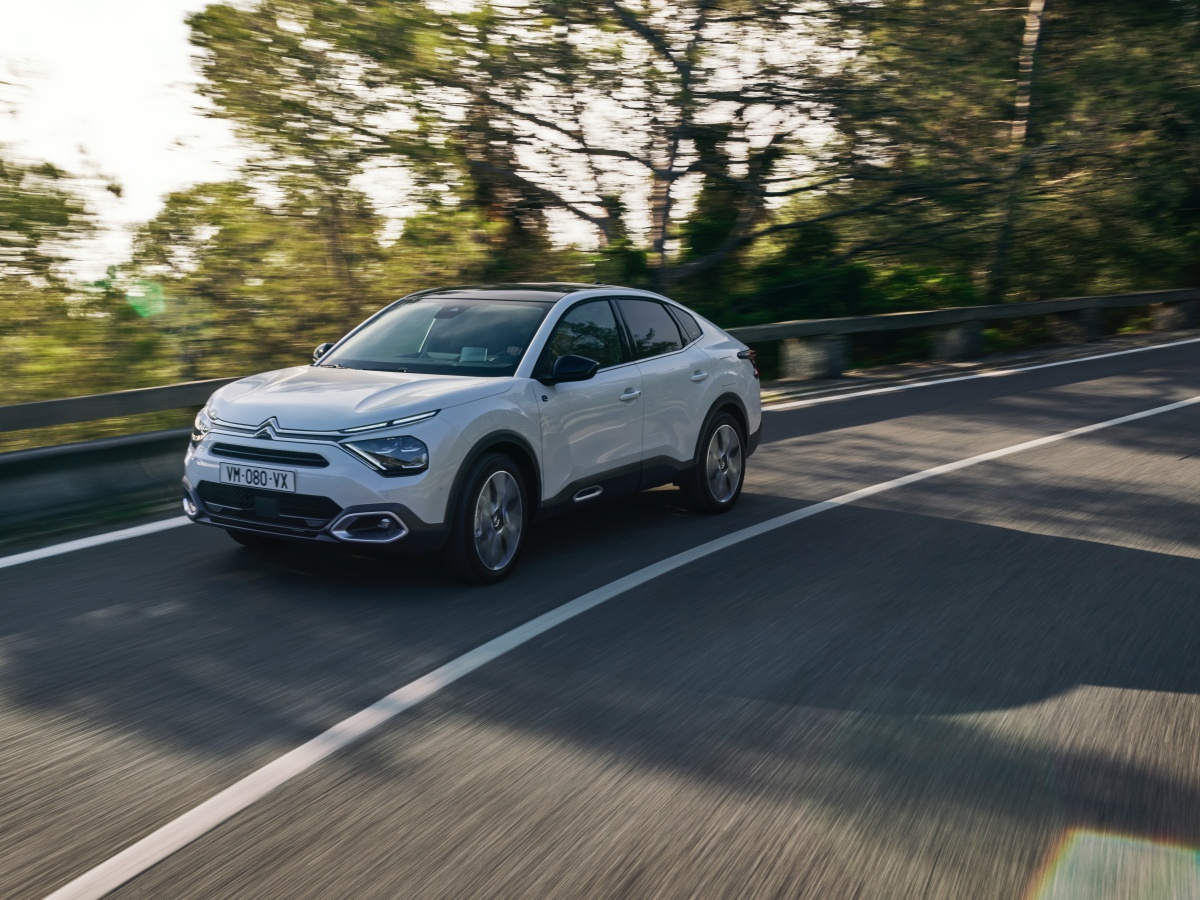 La Citroën ë-C4 X, variante con la coda della ë-C4, è una berlina elettrica francese a quattro porte.