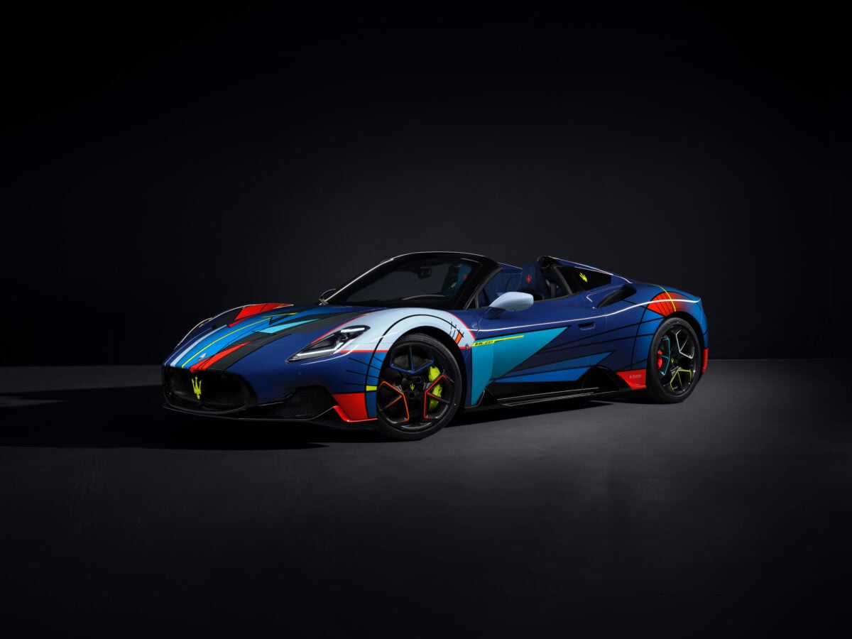 Non meno significativa la partnership con Giorgetti, simbolo dell’interior design, che ha portato alla realizzazione di un esemplare unico di Grecale Folgore in Gleaming Dusk, con dettagli in rame e interni in pelle color denim, accompagnato da una collezione di arredi ispirata agli stessi valori di precisione, ricerca e qualità senza compromessi. Più radicale, invece, la MC20 Cielo “Less is More…?”, definita come un esercizio di stile ispirato al Bauhaus, con livrea Blu Corse Matte e geometrie che reinterpretano il Tridente in chiave grafica e contemporanea.